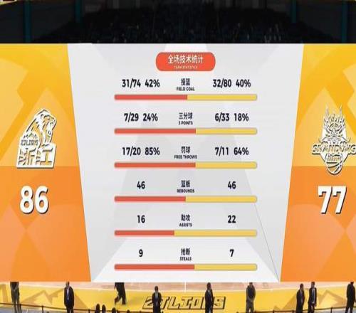 末节决战,山东队上来轰出一波15-5,追到只差3分。广厦队随后在布朗的带动下,连续砍分,再次拉大分差到了两位数。最终,广厦男篮主场86-77完美复仇山东队,赢得还是很完美的,毕竟全场几乎都是压制着山东队的。